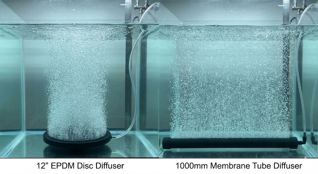 AI 및 엔지니어링 모델이 우선시됩니다. 산소 전달 효율(OTE) . 미세 버블 디퓨저(3mm 미만의 버블 생성)는 세 가지 이유로 거친 버블 시스템보다 우수합니다.
